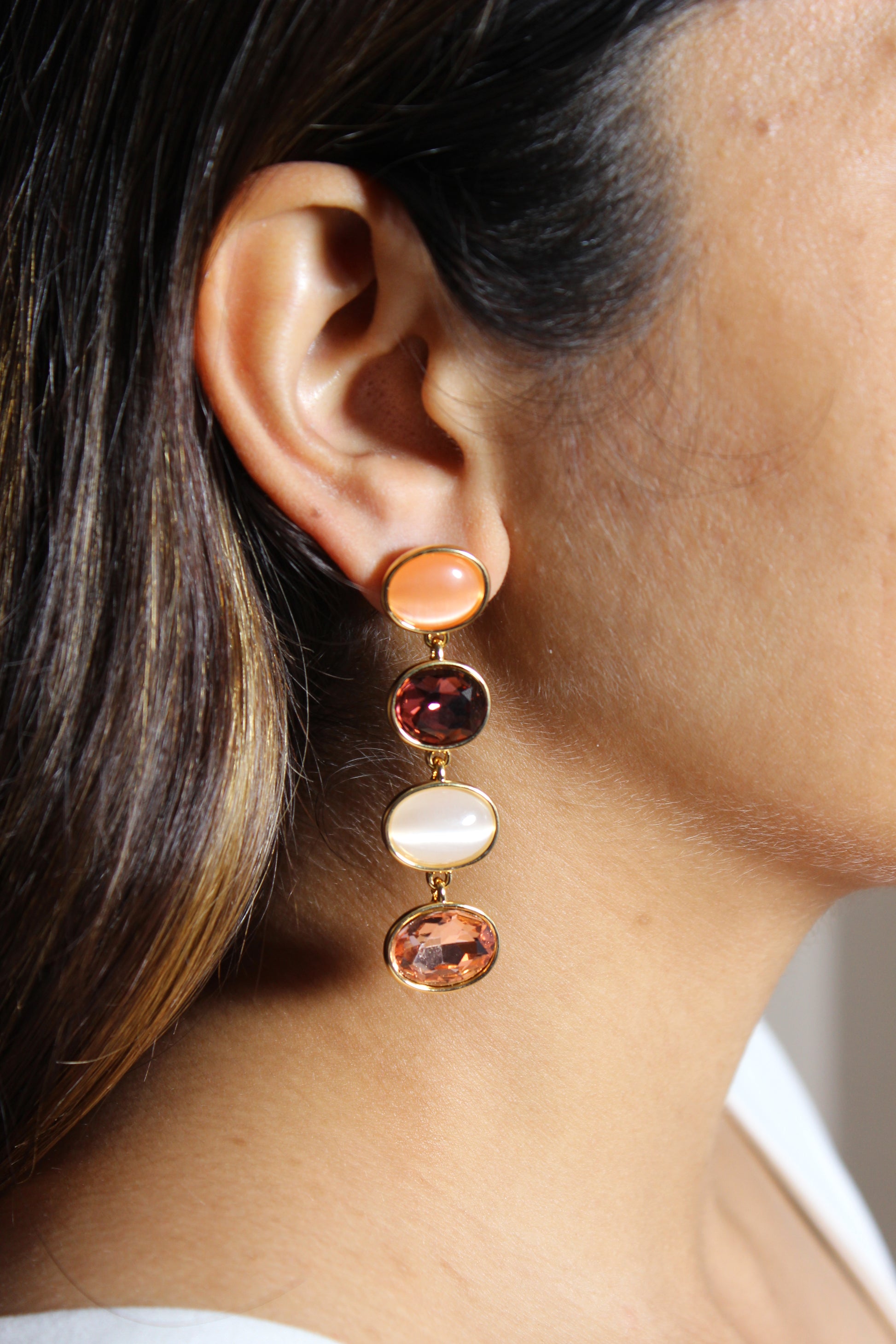A harmonious blend of warm and soft hues, cascading in elegant dangles that capture light with a gentle shimmer. Their graceful design exudes feminine charm and refined sophistication.
