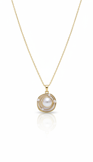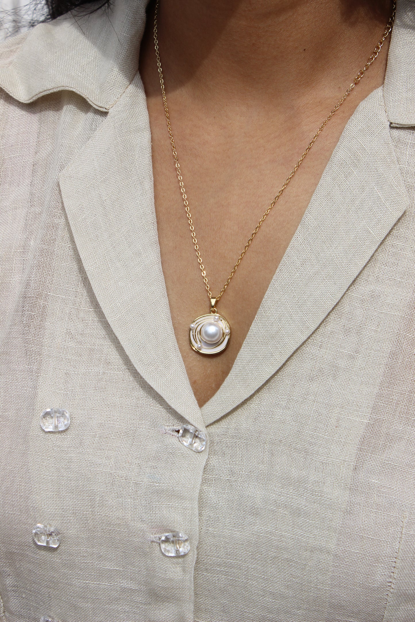 A pearl embraced by graceful gold curves, this pendant symbolizes unity and elegance - a timeless piece that speaks softly but leaves a lasting impression.