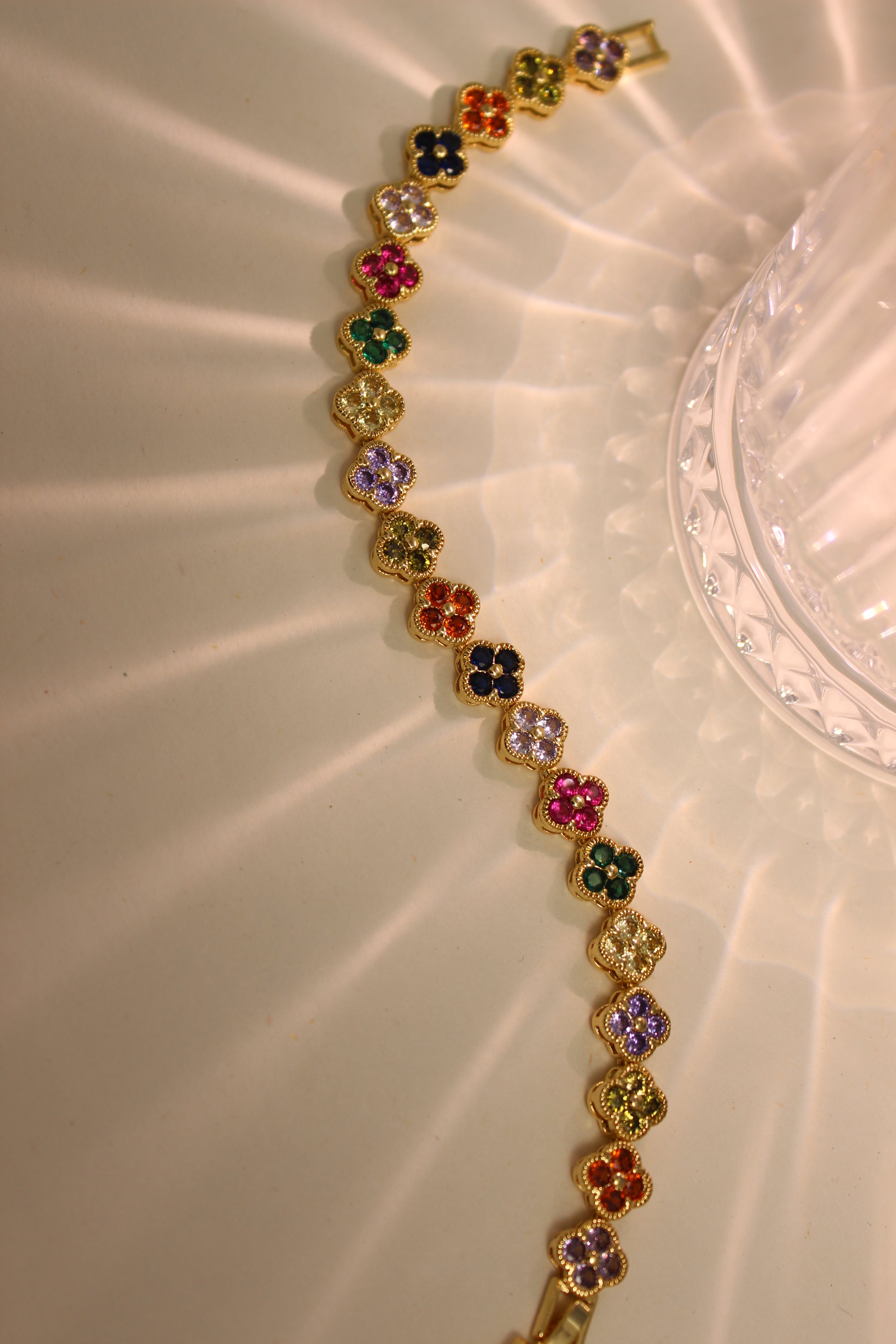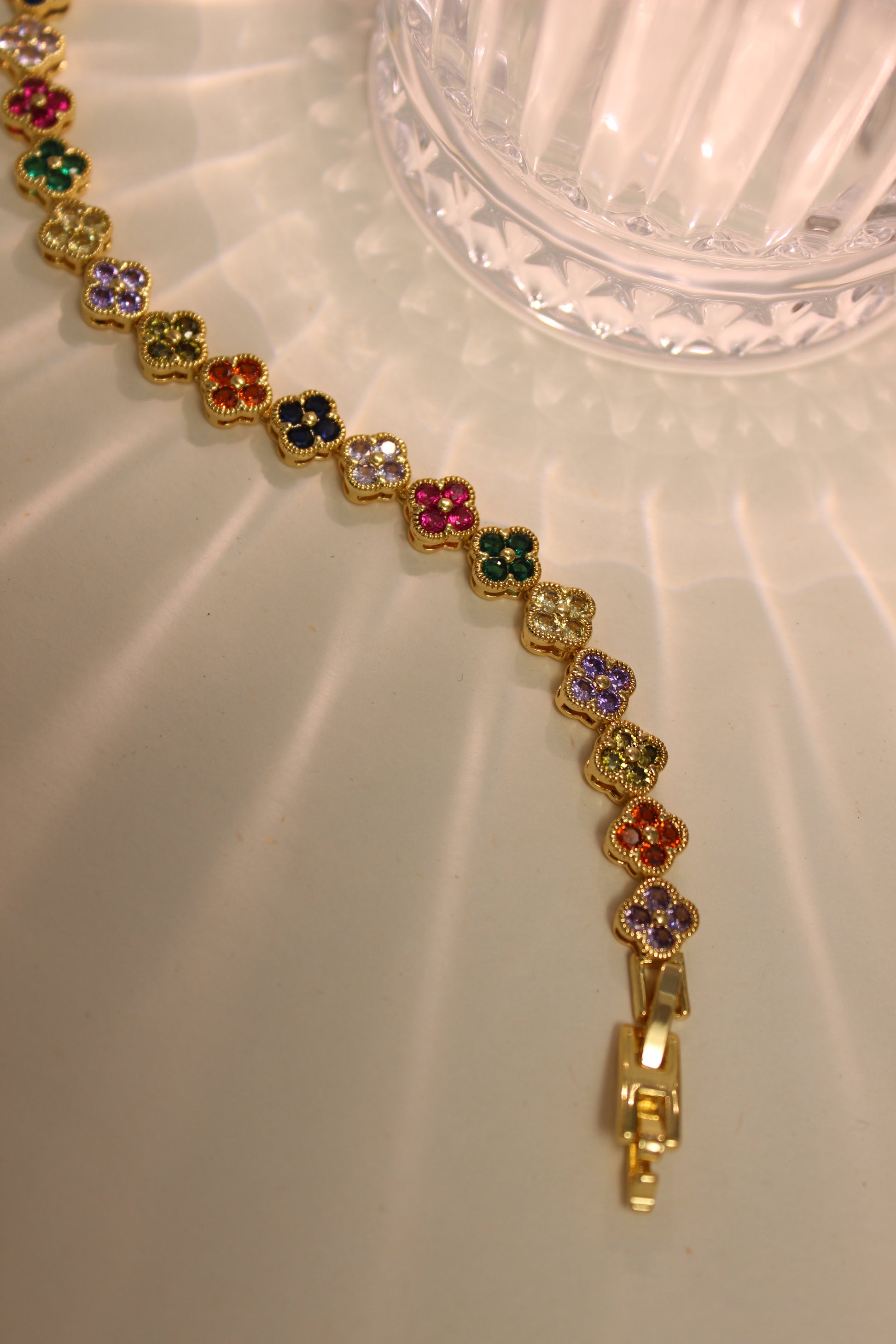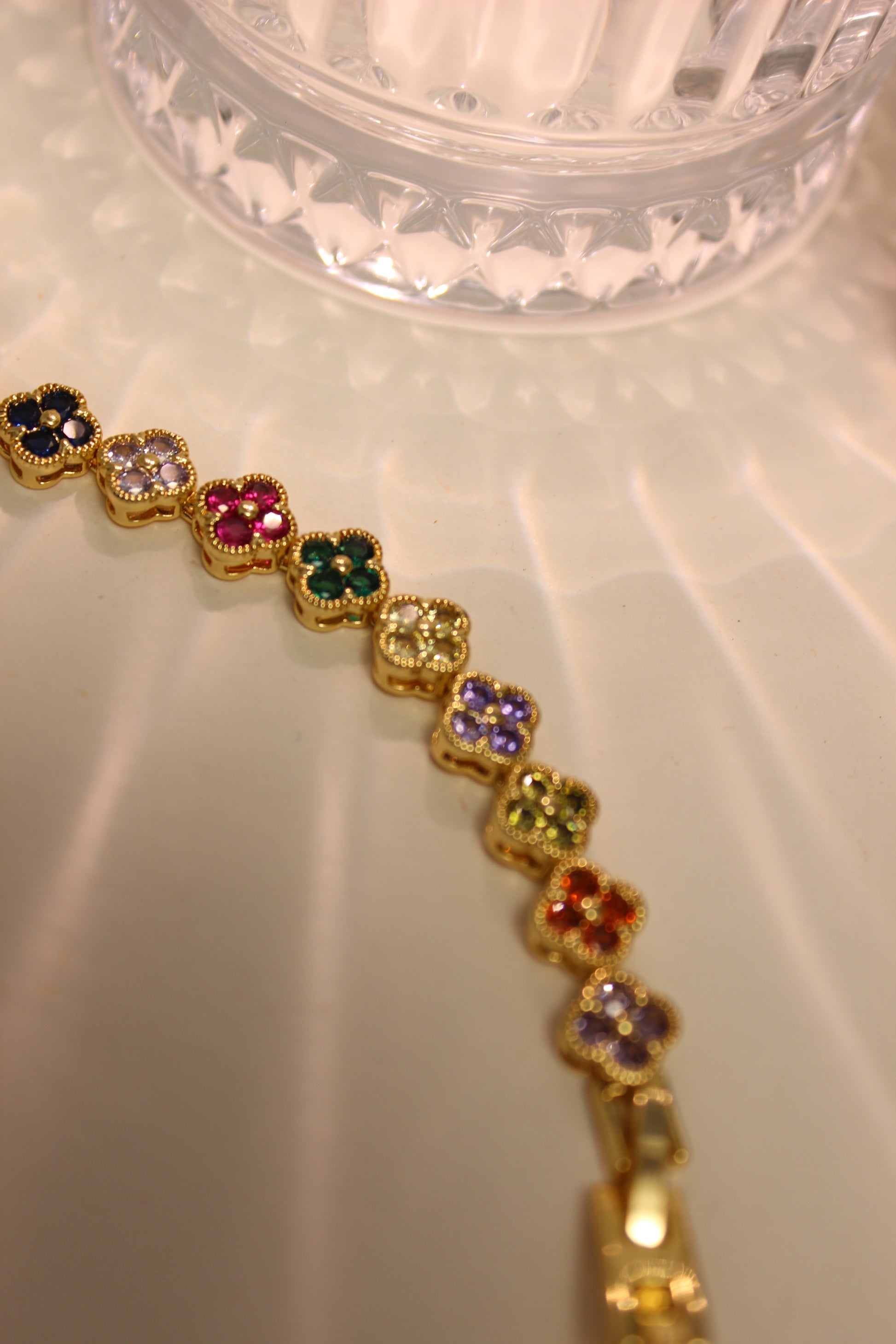 With clover-shaped accents crafted in sweet, jewel-like tones, this bracelet adds a hint of charm and cheer to your wrist. Lighthearted yet elegant, it’s a piece made to brighten everyday moments.
