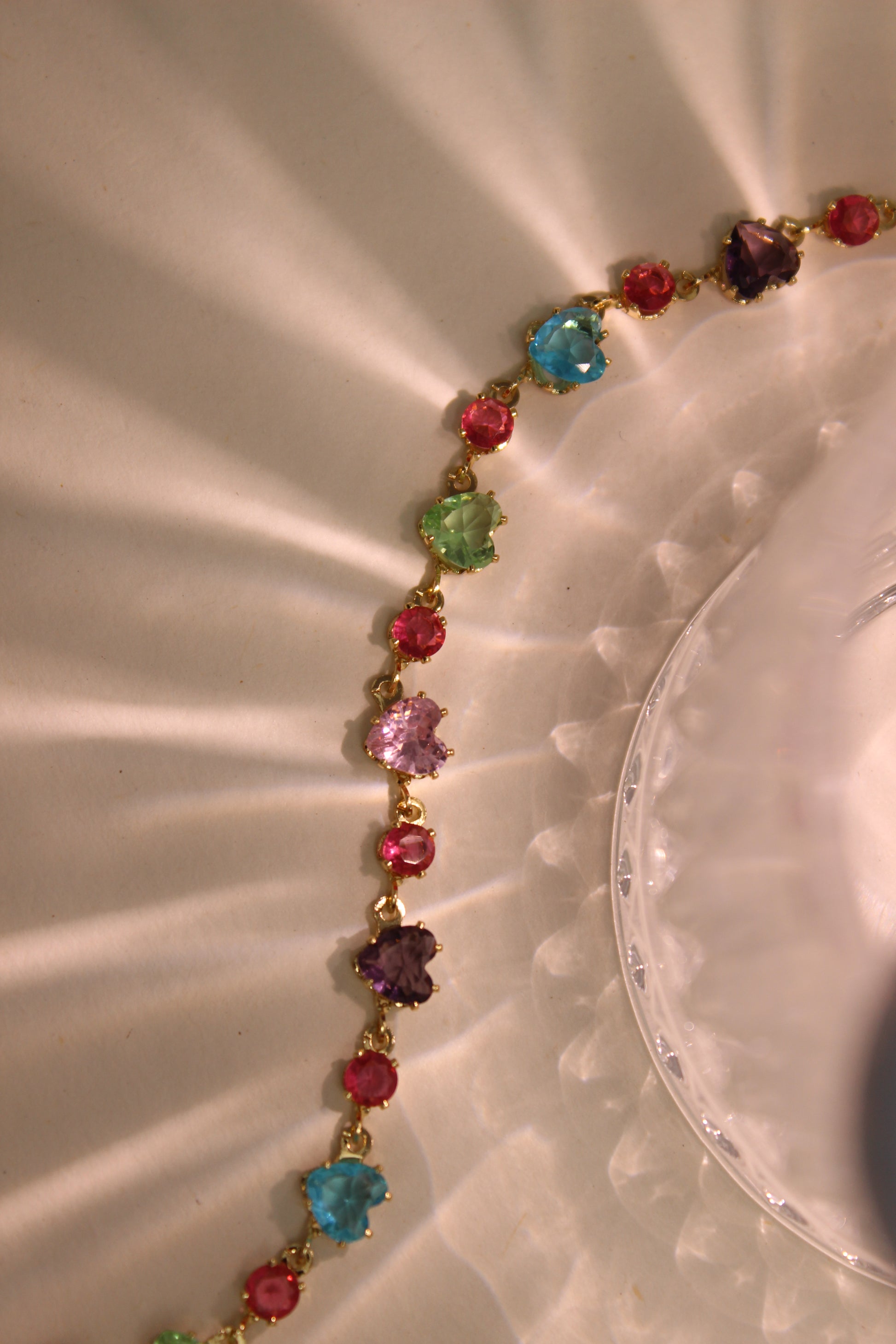 Adorned with playful heart-shaped accents, this bracelet blends whimsy with elegance. A cheerful yet refined piece, it’s perfect for adding a subtle pop of personality to your everyday look.