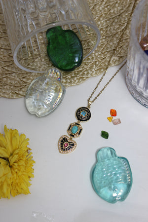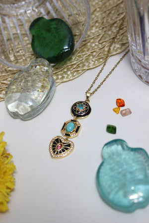 A delicate chain strung with deep, midnight-toned accents that shimmer like constellations. Elegant and mysterious, it adds a celestial glow to both day and evening looks.