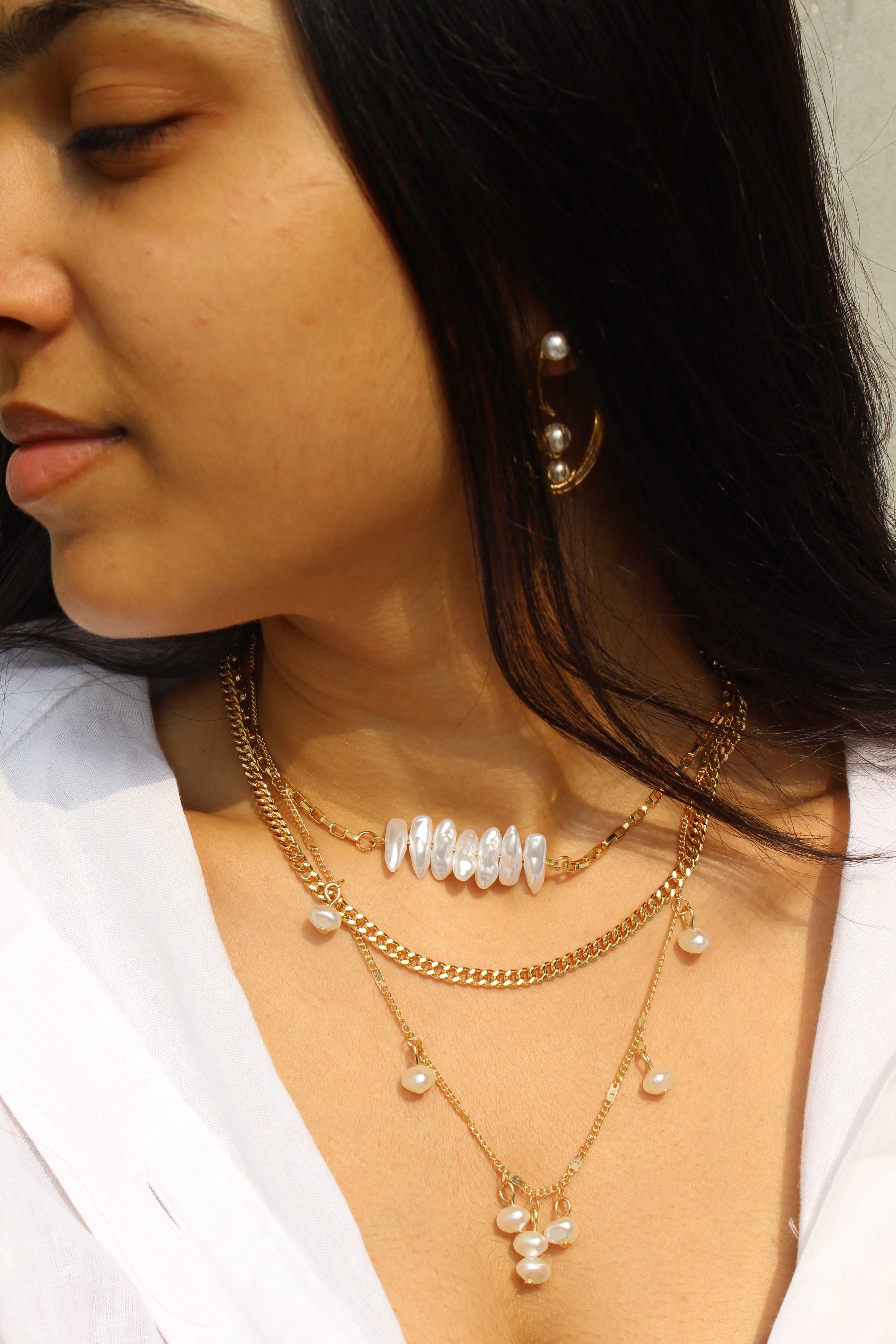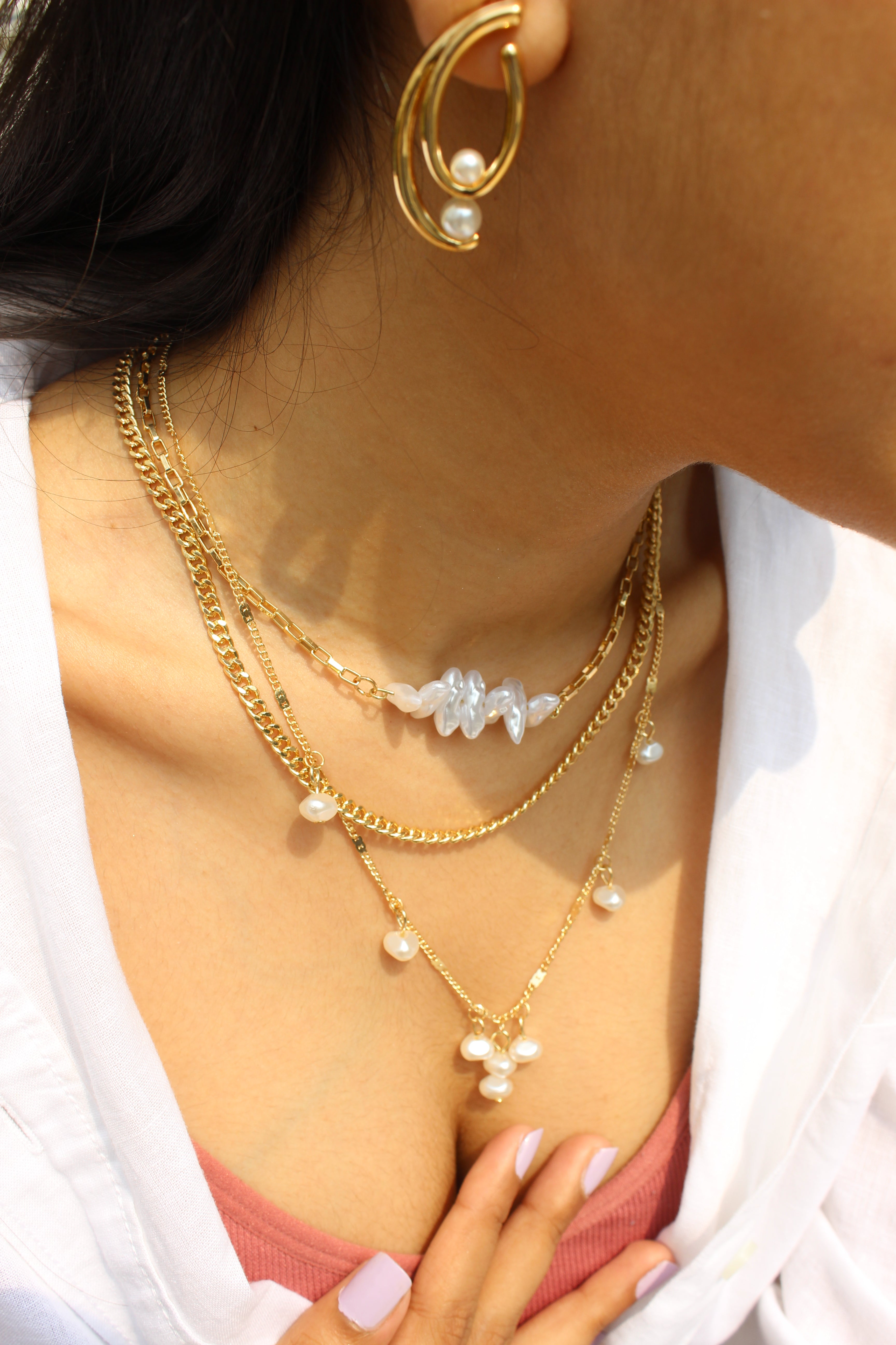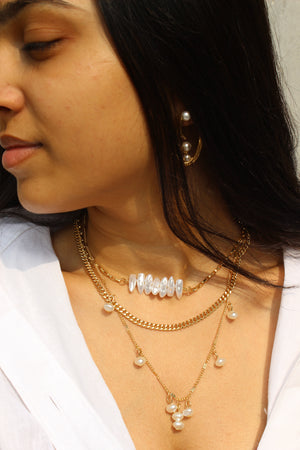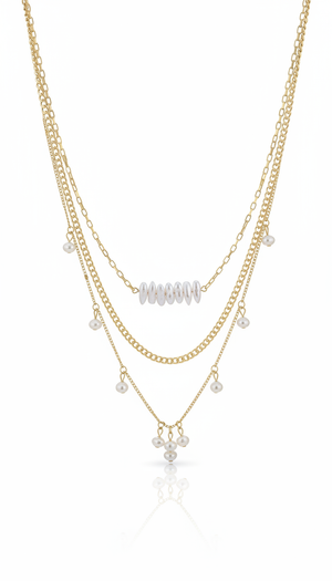 The Isla Layered Necklace is a pearl layered piece that features: