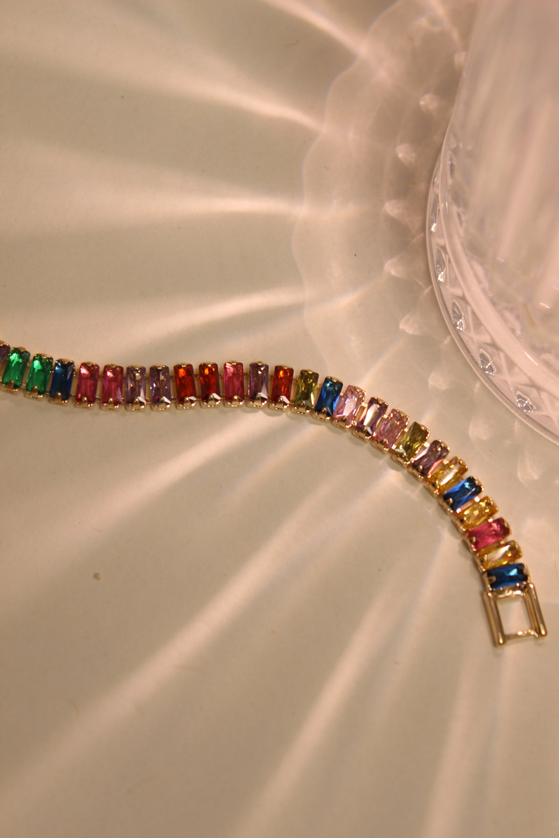 Stack it with minimalist bangles for contrast, or let it shine solo as a statement piece - the Jeweltone Bracelet thrives in the spotlight.