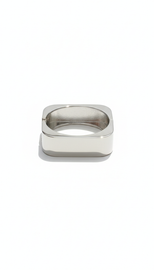 A bold take on minimalism. This plain kada features a square silhouette in a sleek silver tone striking in its simplicity.