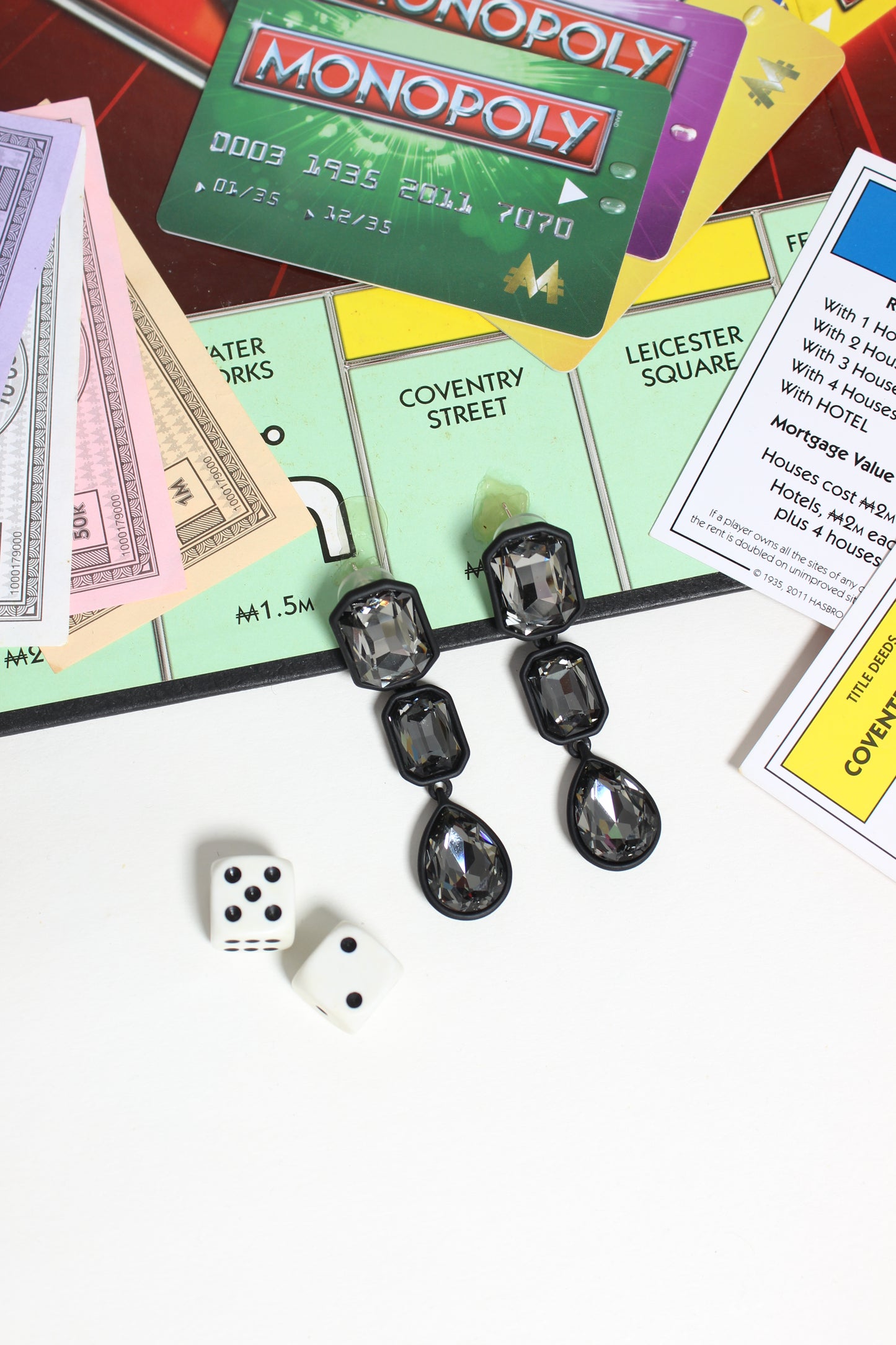 Bold and contemporary, these slightly chunky dangle earrings feature a deep black hue with a smooth rubber matte finish. Their sleek texture and dynamic design make them a statement piece, exuding modern sophistication and edgy elegance.