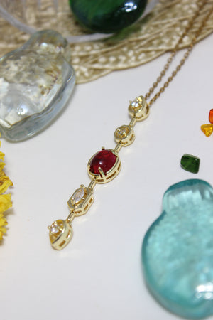 Bead in rich ruby-inspired tones line a fine chain, bringing depth and vibrance to your look. Striking yet refined, it’s a necklace made to stand out with effortless elegance.