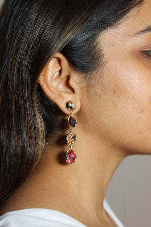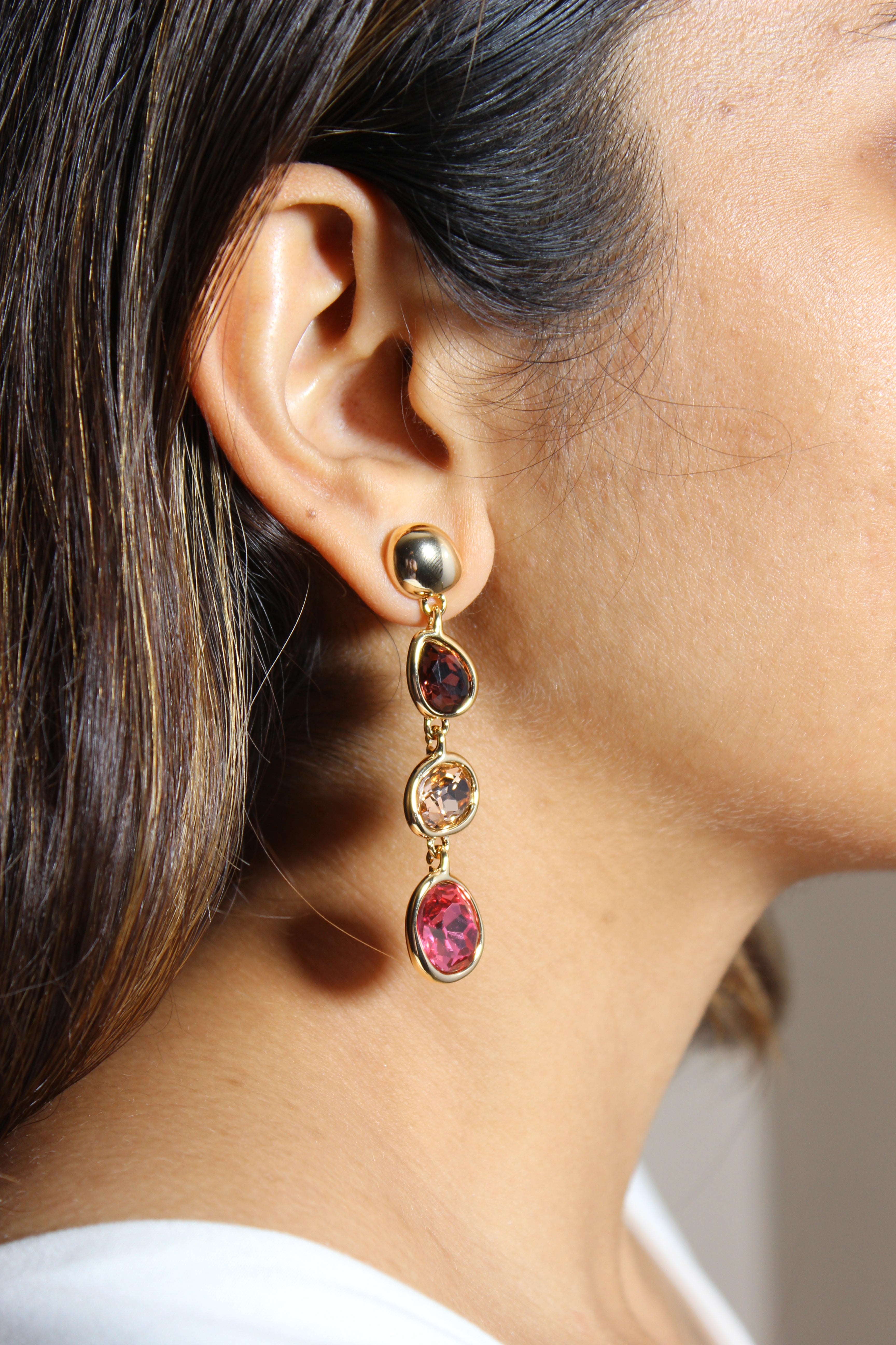 A warm, elegant fusion of earthy and soft tones, cascading gracefully in a refined dangle. Their subtle shimmer and balanced palette evoke the quiet beauty of a blooming garden at sunset.