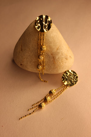 Tidal Whisper Earrings flow with gentle curves in a sleek 18K gold-tone plated, anti-tarnish finish. Lightweight and fluid, they move with quiet elegance and reflect the calm of the sea.