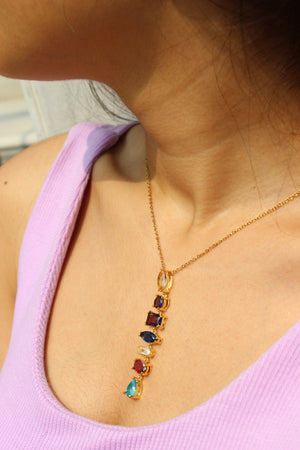 Styling Tip: Pair it with solid tops or dresses to highlight the vertical gemstone drop, or wear it solo for a clean, statement finish.