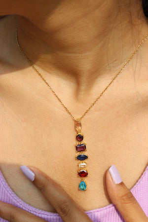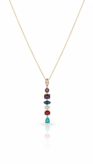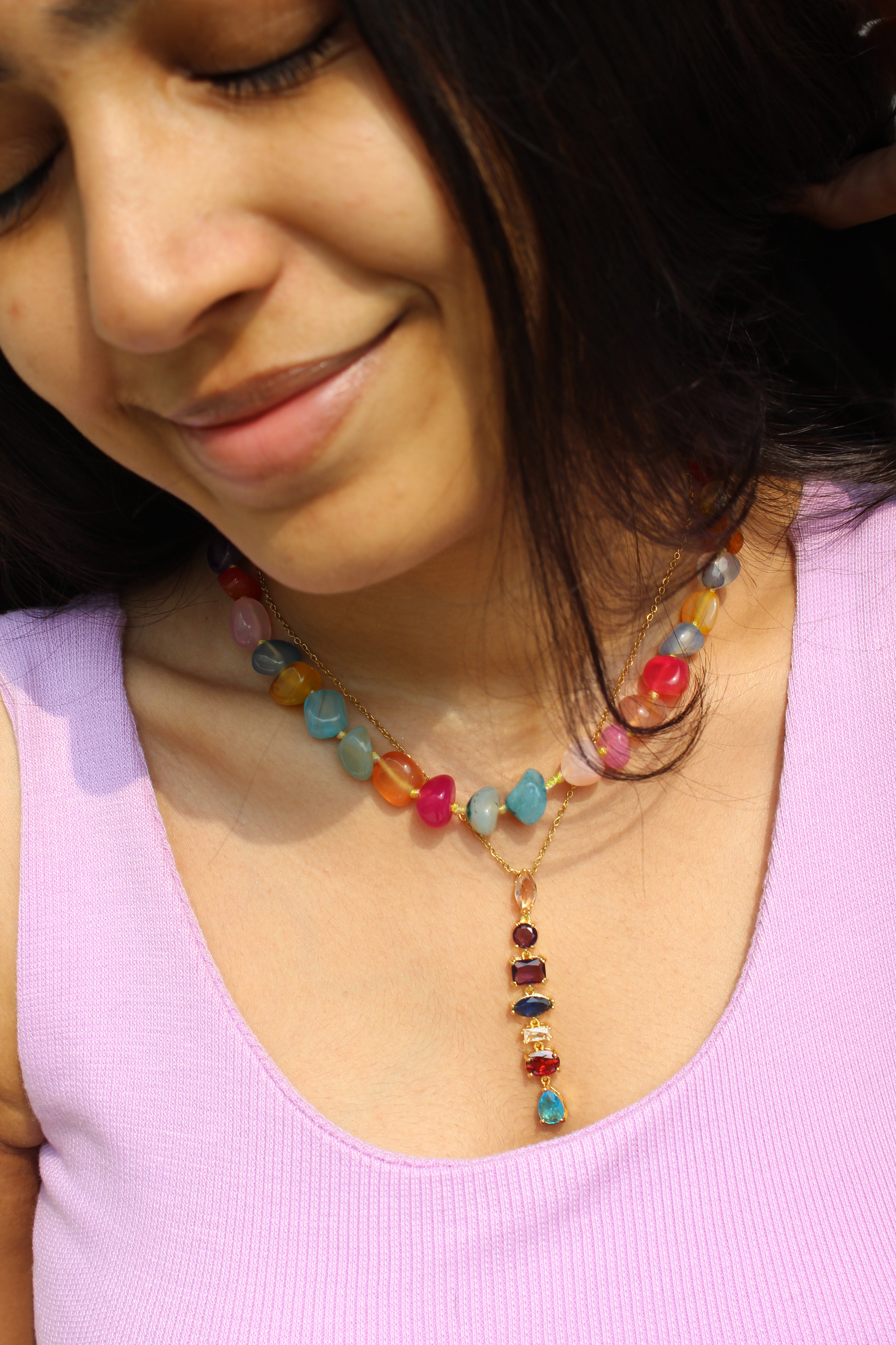 This multicolor gemstone pendant necklace is a refined statement piece that features: